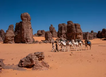 Ce circuit unique débute par un panorama grandiose sur la baie d’Alger avant de plonger dans l’atmosphère envoûtante de la Casbah et du Jardin d’Essai. Cap ensuite sur Djanet, porte d’entrée du Sahara, pour une immersion totale dans l’univers des dunes dorées, des canyons verdoyants et des gravures ... rupestres vieilles de plusieurs millénaires. Entre randonnées, rencontres avec les nomades, nuits étoilées en bivouac et découvertes archéologiques, chaque étape vous transporte dans un décor digne d’un livre d’aventures. Un voyage où l’histoire, la nature et l’hospitalité algérienne se mêlent pour offrir une expérience authentique et inoubliable.