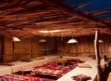Admiration du coucher de soleil puis dîner animé sous les étoiles.