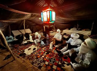 Admiration du coucher de soleil suivie d'une soirée animée autour d’un dîner sous les étoiles et nuitée en bivouac au cœur du désert.